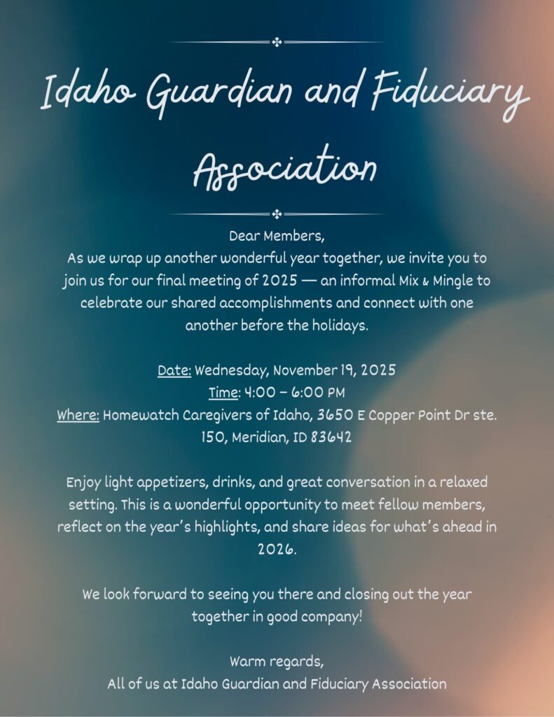 Guest speaker Captain Zack Walls from the Ada County Sheriff’s Office will be speaking about the vulnerable adult registry program.